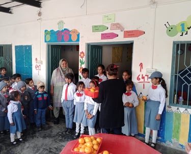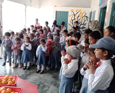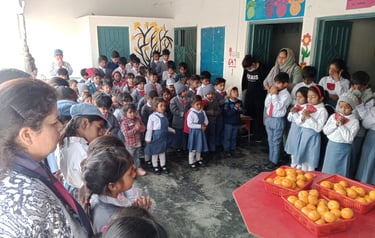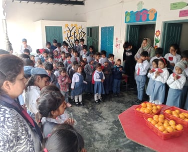 Oranges, which are rich in vitamins and antioxidants, play an important role in promoting better health and immunity. As part of our initiative, oranges are provided to school children during the winter season on a weekly basis to support their nutrition and well-being. Our goal is to ensure consistent nutritional support that contributes to their overall health and development. With collective efforts, we aim to spread health, hope, and happiness among students and the wider community.