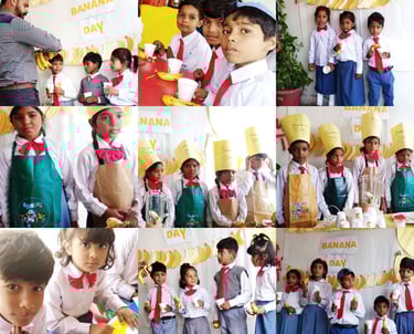 The celebration also includes practical lessons on proper fruit washing, reinforcing the importance of hygiene. Additionally, children are introduced to basic food preparation skills by making banana shakes, which fosters independence and sparks an interest in simple cooking activities.